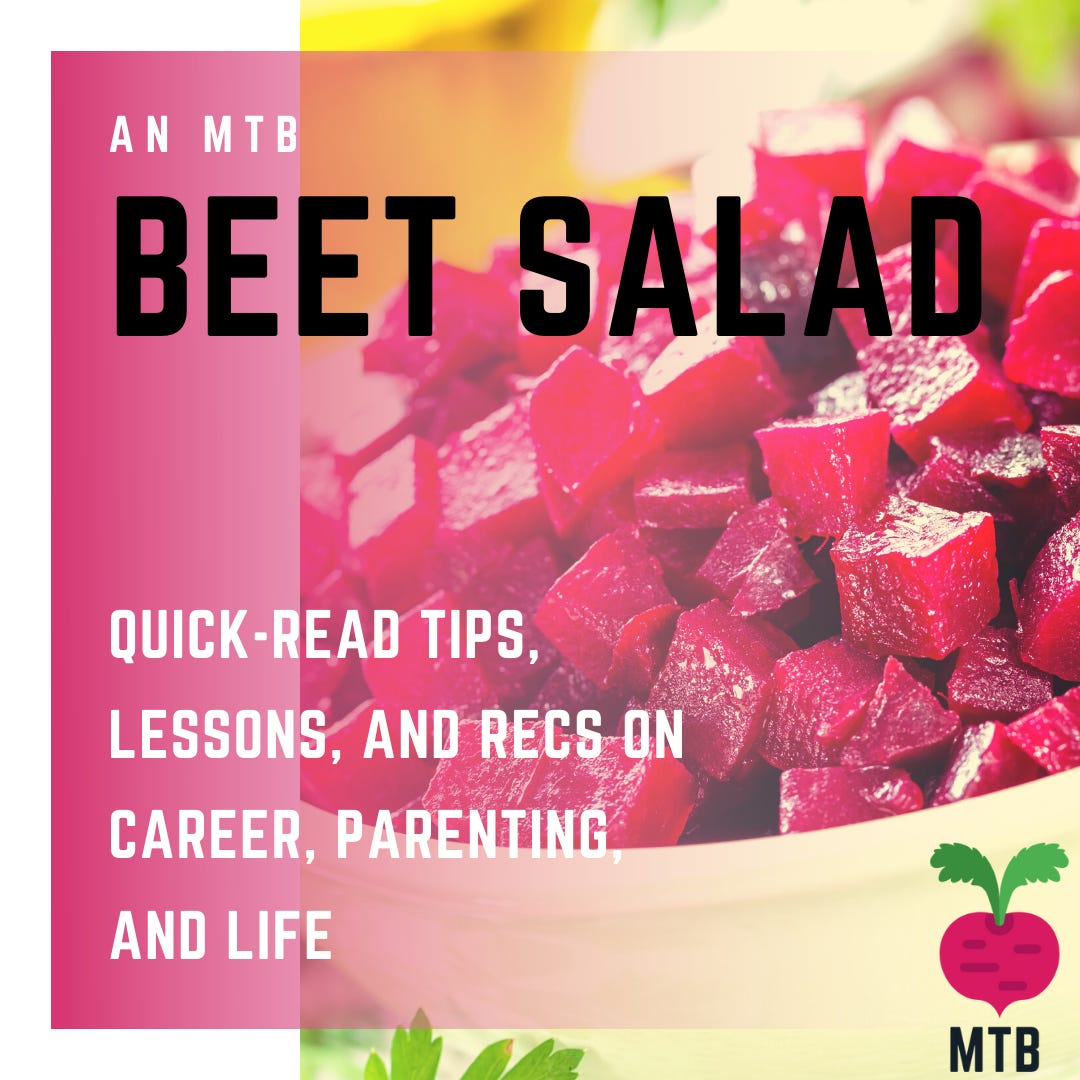 👋 Hi from Helen. Welcome to our first Beet Salad of 2022 - this is a format we use sometimes that provides a compilation of quick-read tips, lessons, and recs across the full spectrum of topics we discuss on Mind The Beet. Perfect for those who just want to skim and graze yet still soak in a few ideas on how to live your best life as a 21st century grown up!